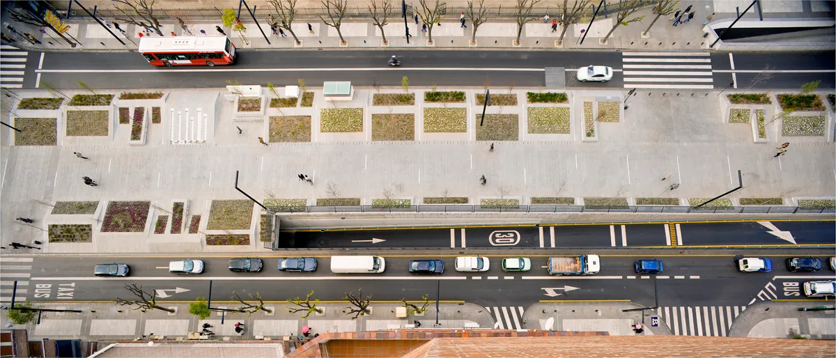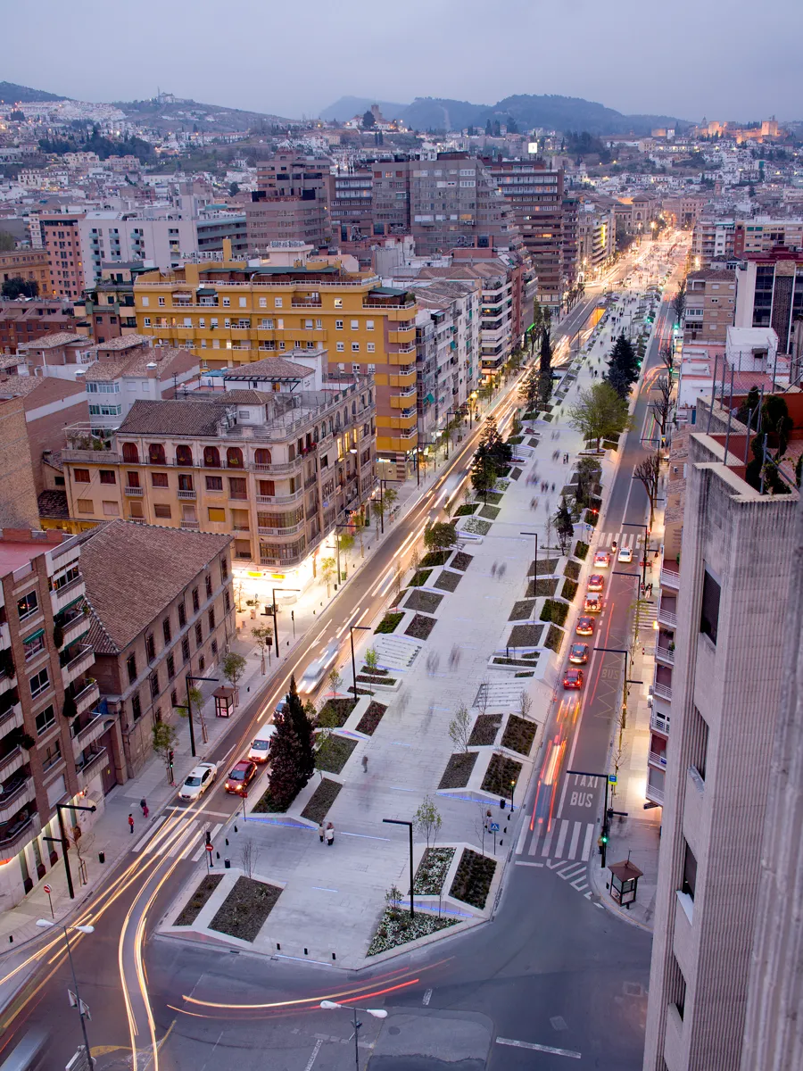 El bulevar de constitución se ha proyectado con un ideal moderno, armónico e innovador, dando una imagen inmejorable a esta emblemática avenida situada en el centro de la ciudad. Caminar por el centro de la avenida de Constitución, sin coches y con la vista lejana del Albaicín y Sierra Nevada, es todo un lujo para los sentidos.